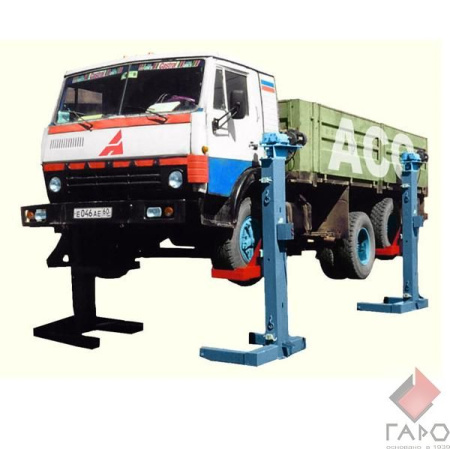 Подъем за колеса двухосных автомобилей и автобусов с диаметром колесного диска от 20 до 22,5 дюймов и общей массой до 16 тонн. Подъемник имеет четыре стойки. По отдельному заказу комплектуется накладками, позволяющими поднимать автомобили с диаметром колесного диска от 12 до 15 или от 15 до 17 дюймов, и траверсой для подъема автомобилей за раму (одна траверса на пару стоек, количество траверс определяет заказчик). Устанавливается на полу с допускаемым удельным давлением более 10 кг/см2.