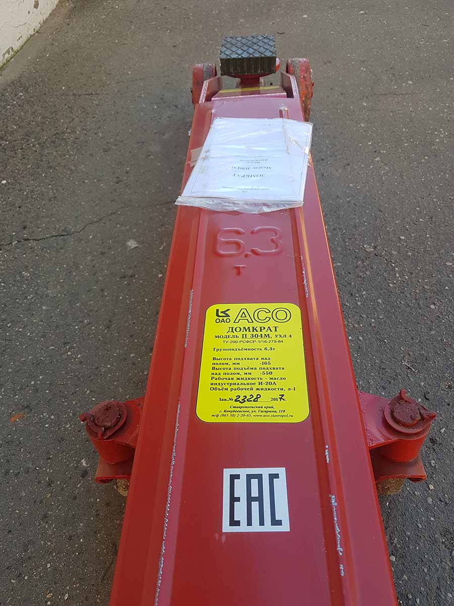 Автомобильный домкрат П-304 обладает грузоподъемностью 6,3 тонны при минимальной высоте подъема 16, 5 сантиметров и максимальной до 0,5 метра. Подобных характеристик достаточно для работы с легковыми автомобилями практически всех марок. Подкатная модель удобна в эксплуатации, поэтому широко используется для осмотра и доступа к ходовым частям и колесам автомобиля.