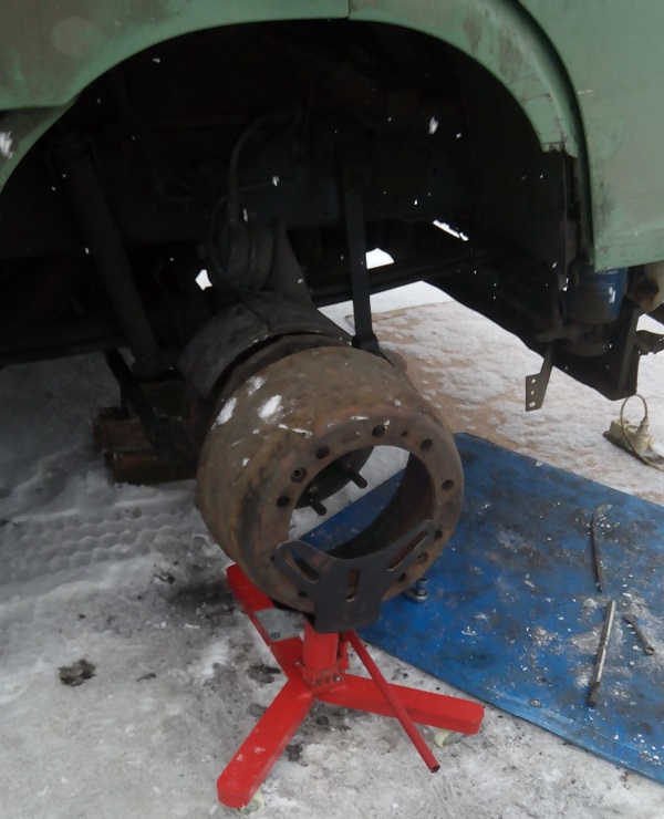 Приспособление ТТН-2 простенькое, но слесаря скажут большое спасибо так как вес одного барабана приблизительно 60 кг, а их на машине 4 шт. и на прицепе 6 шт.
