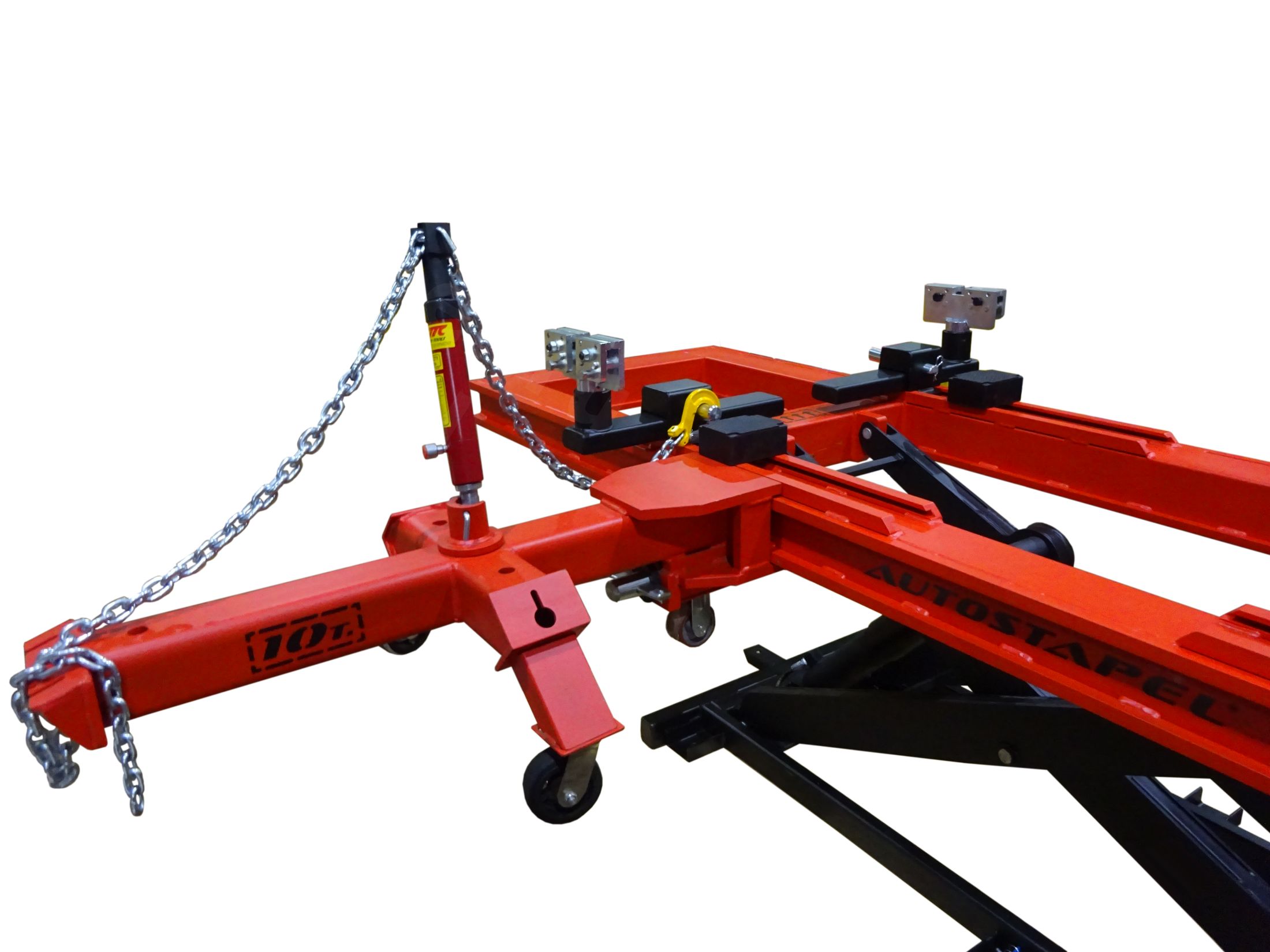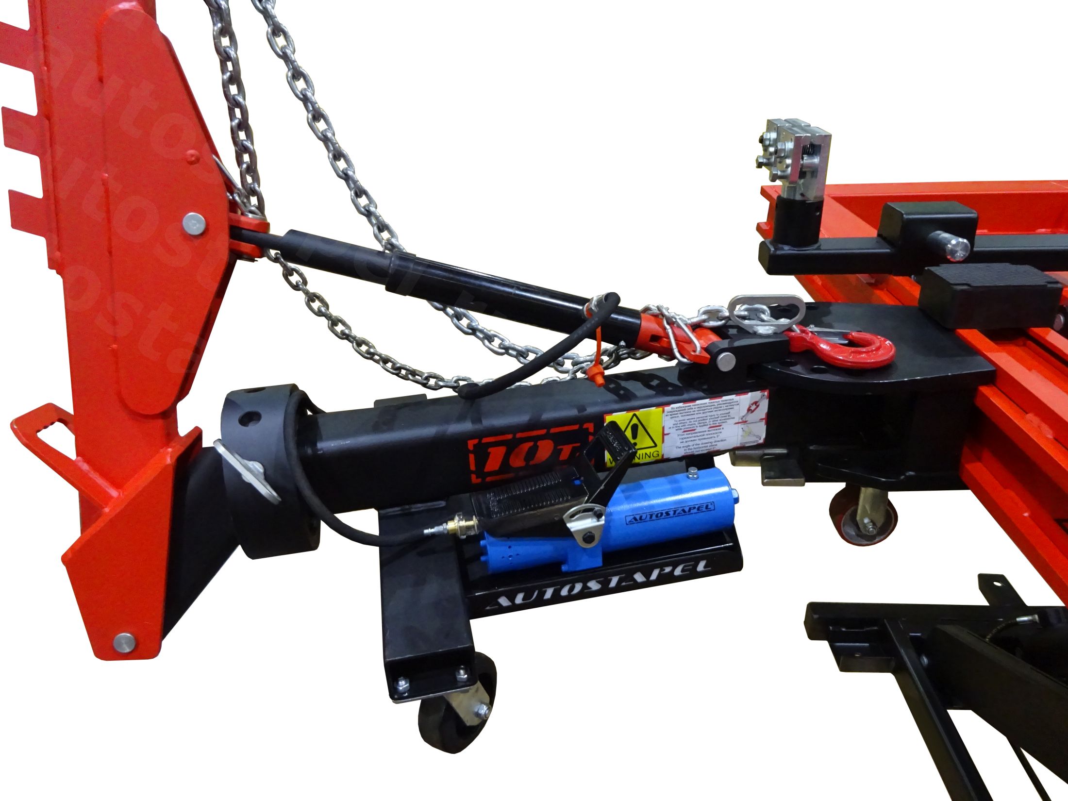 Силовое устройство является самым мощным и удобным инструментом среди одноклассников. Специально разработанная система шарниров наделяет этот агрегат свойствами движения руки человека и позволяет мастеру выбирать направление тяги с особой точностью. Одновременно с этим, данное устройство очень компактно и остается самым надежным в эксплуатации и простым в обращении оборудованием. Для удобства в передвижении по цеху и к месту работ, оно оснащено усиленными поворотными колесами. Фиксация к стапелю осуществляется одним клином в любой точке рамы. Прочная конструкция с помощью специальной оснастки позволяет использовать устройство для создания тяги вверх/вниз и толкающего усилия. Силовые устройства данного типа за годы эксплуатации достойно зарекомендовали себя в работе. Данная модель изготовлена в духе лучших образцов европейских производителей и дополнена разработками с учетом опыта и пожеланий мастеров кузовного дела.