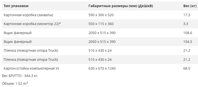 Стенды ТехноВектор доставляются в специальной таре, количество мест и габариты приведены в таблице: